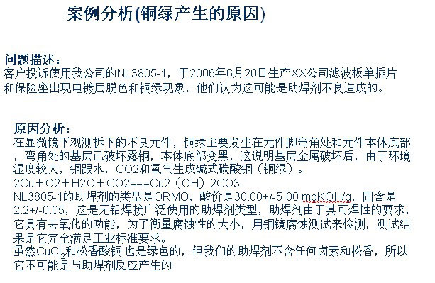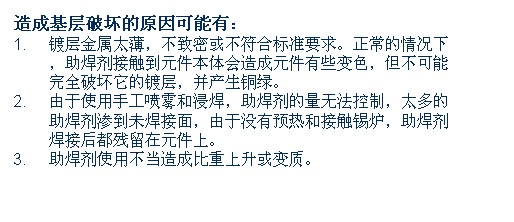 機酸(suān)。這些活化劑在室(shi)溫中仍是高活性(xing)及不能完全在焊(han)接過程中去除。